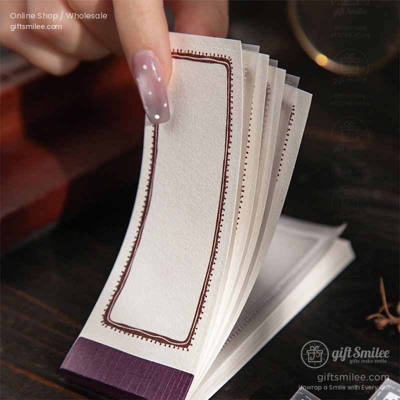 Textured Cotton Paper Vintage Border Prints 8 Color Spines Mini Memo Pad | KS-NP-438