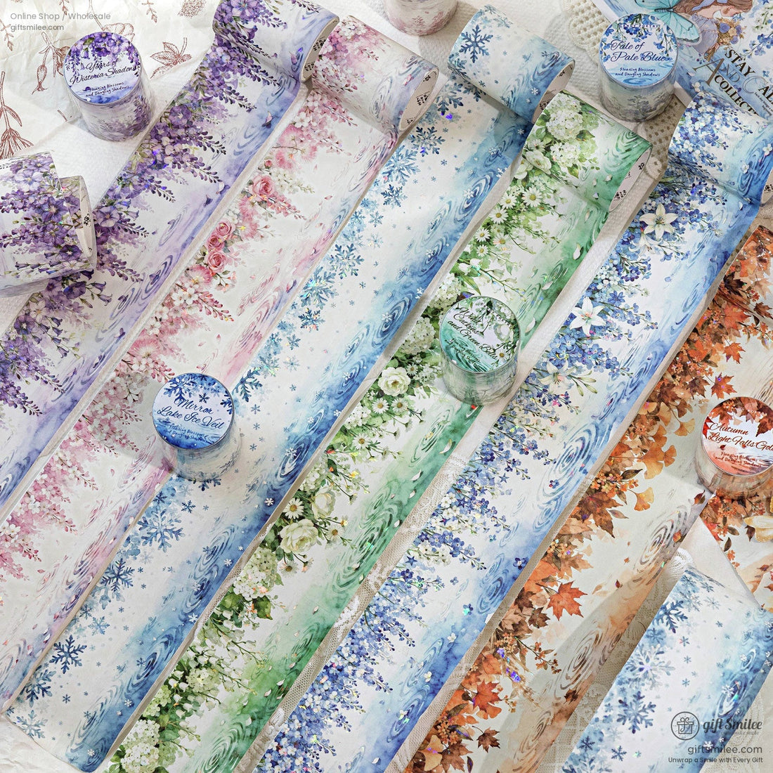 Holographic Floral Watercolor Seasonal Gradient Decorative Washi Tape | KS-RT-1760