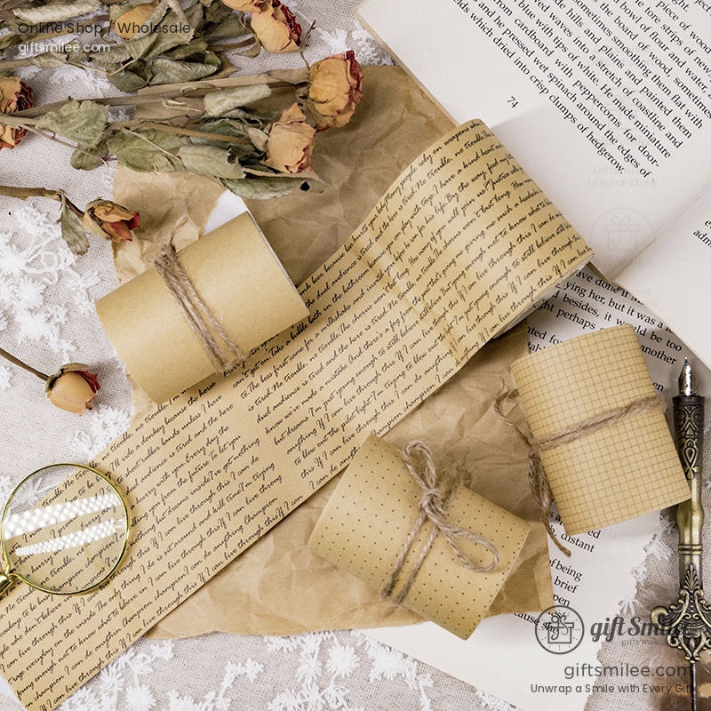 Kraft Vintage Script Grid Decorative Paper Tape | KS-RT-1763