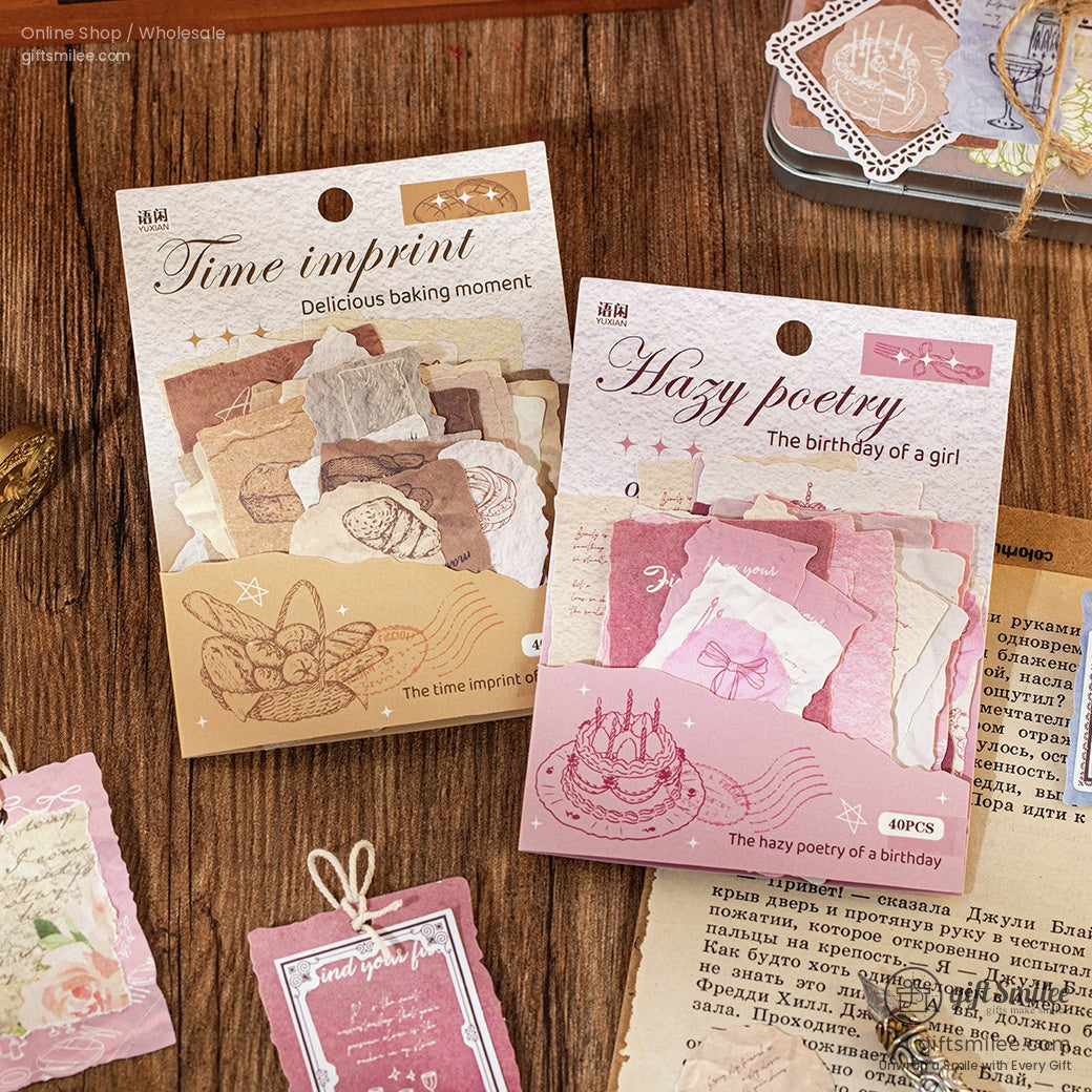 Vintage Textured Paper Writable Adhesive 40-Piece Assorted Decorative Stickers | KS-SA-4255