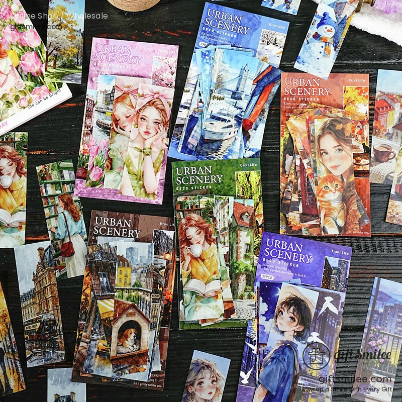 Matte Paper Die‑Cut 25Pcs Urban Watercolor Sticker Pack | KS-SA-4262