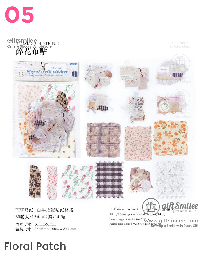 復古剪貼簿 C 花卉織物貼紙包 | KS-SA-3988