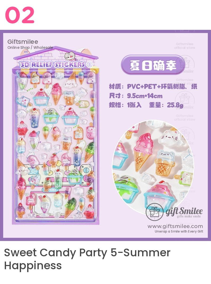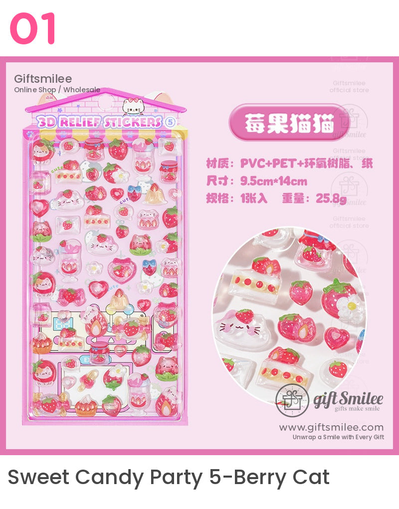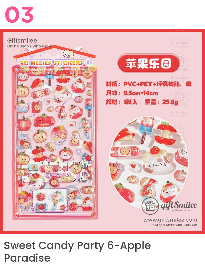 卡哇伊 3D 水果甜點和動物 3D 浮雕可愛貼紙 | KS-SA-4023