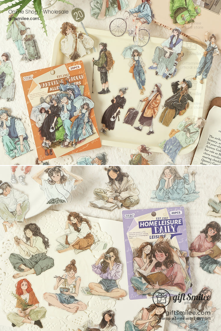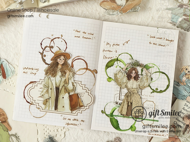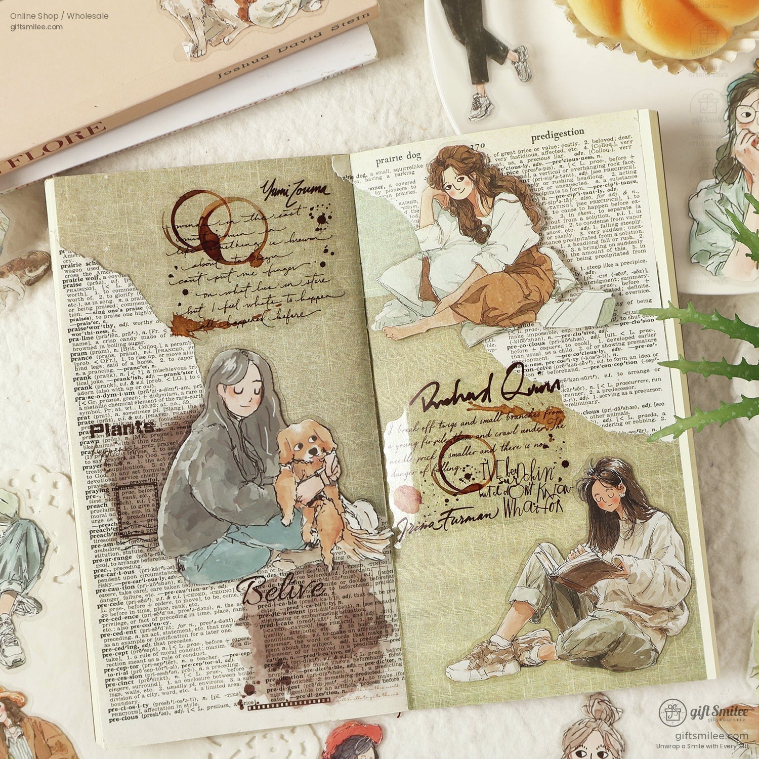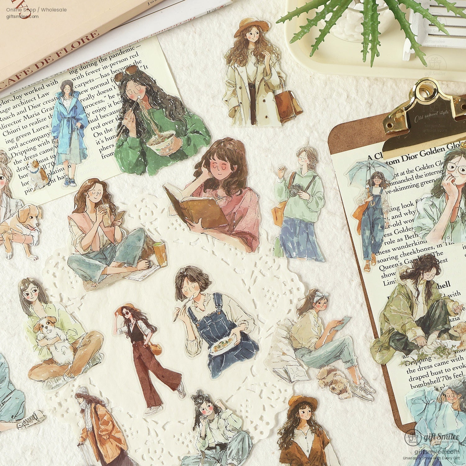 Soft pages of an open book, the muffled sound of rain tapping against the window, and a warm cup nestled between hands—these stickers feel like snippets from lazy afternoons. Each one tells of quiet companionship, friends gathered on vibrant cobblestone streets, or shared meals full of laughter.