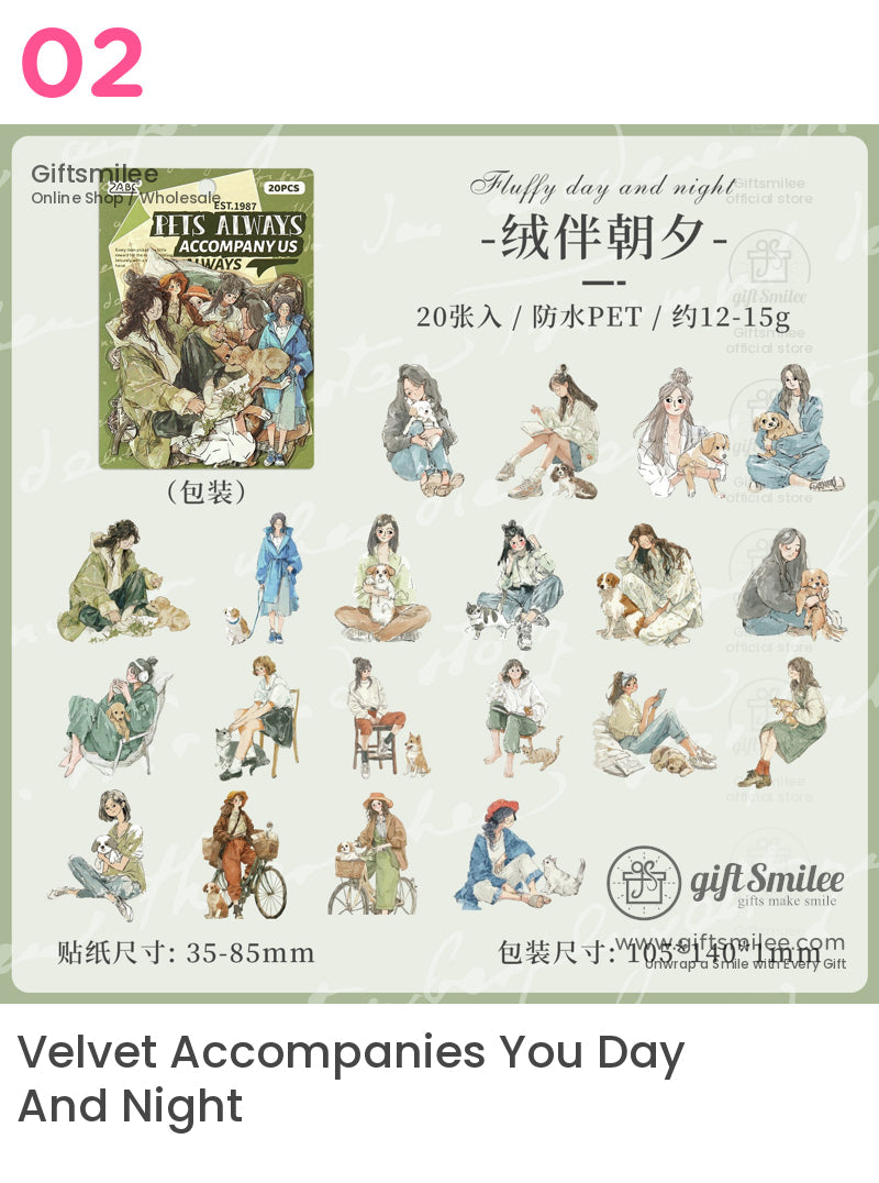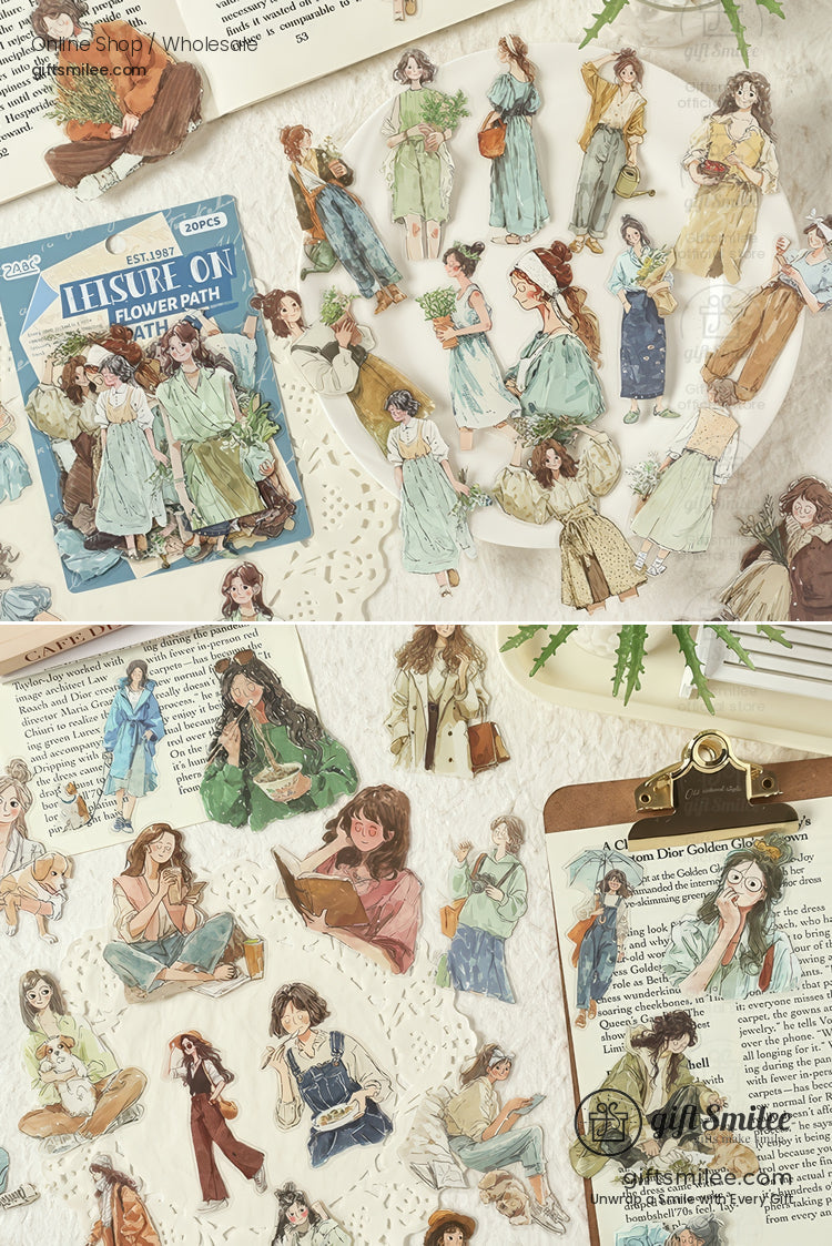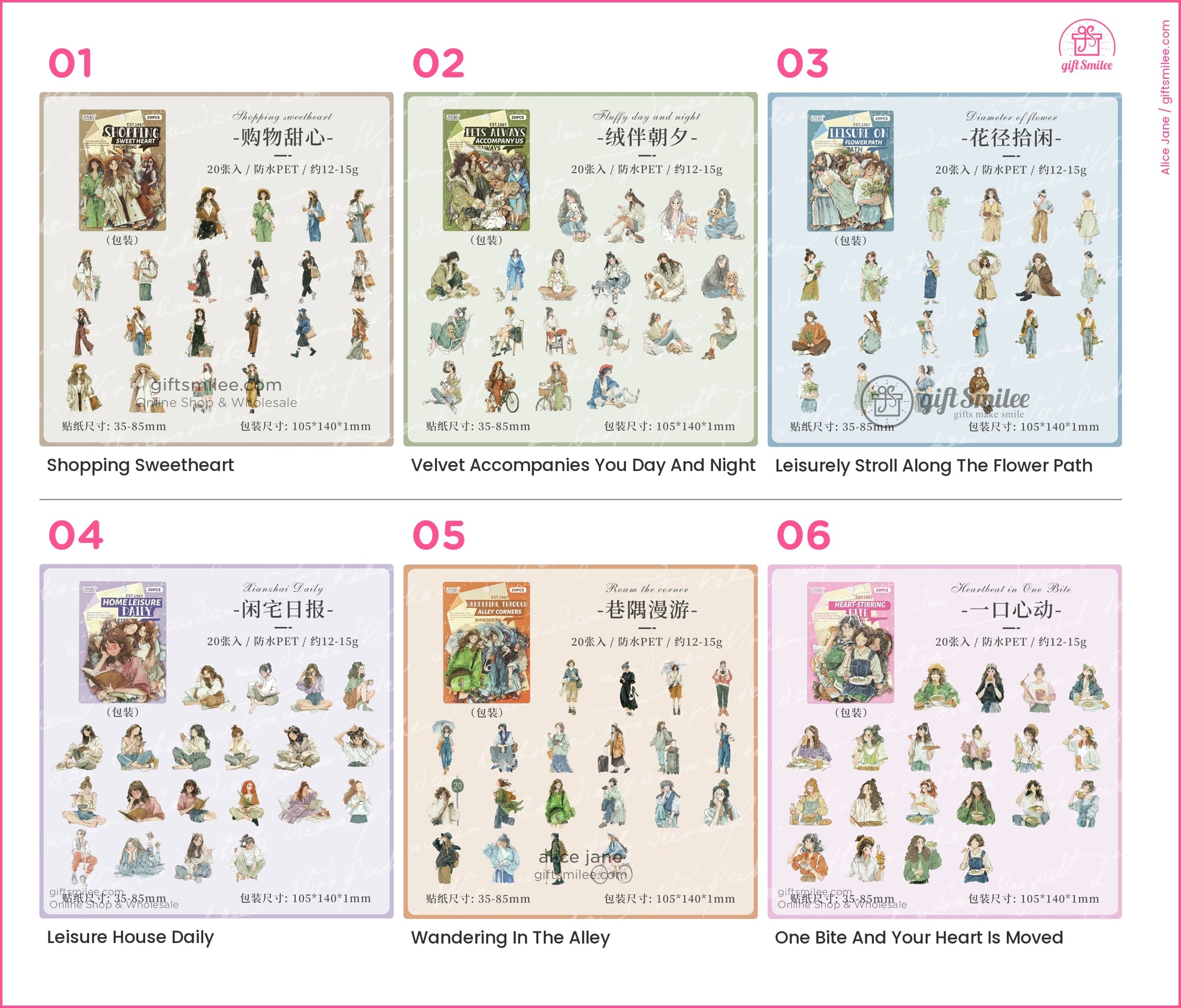 Soft pages of an open book, the muffled sound of rain tapping against the window, and a warm cup nestled between hands—these stickers feel like snippets from lazy afternoons. Each one tells of quiet companionship, friends gathered on vibrant cobblestone streets, or shared meals full of laughter.