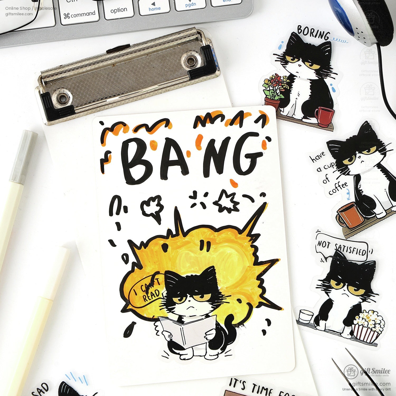 Morning sunlight filters through the blinds, and there it is—your coffee, still steaming, and that one sticker of a cat glaring at its cup like life just insulted it. The desk feels alive, scattered with these tiny feline personalities. Each one seems to be caught mid-thought—whether it's the "not this again" stare or the "seriously?" purr-sonality, they're the little comics you didn't know your to-do list needed.