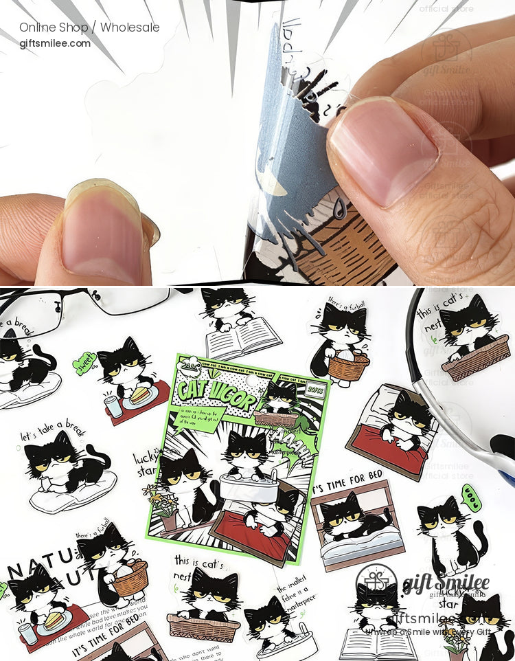 Matte Vinyl Waterproof Die-Cut Comic Cat Sticker Pack | KS-SA-4328