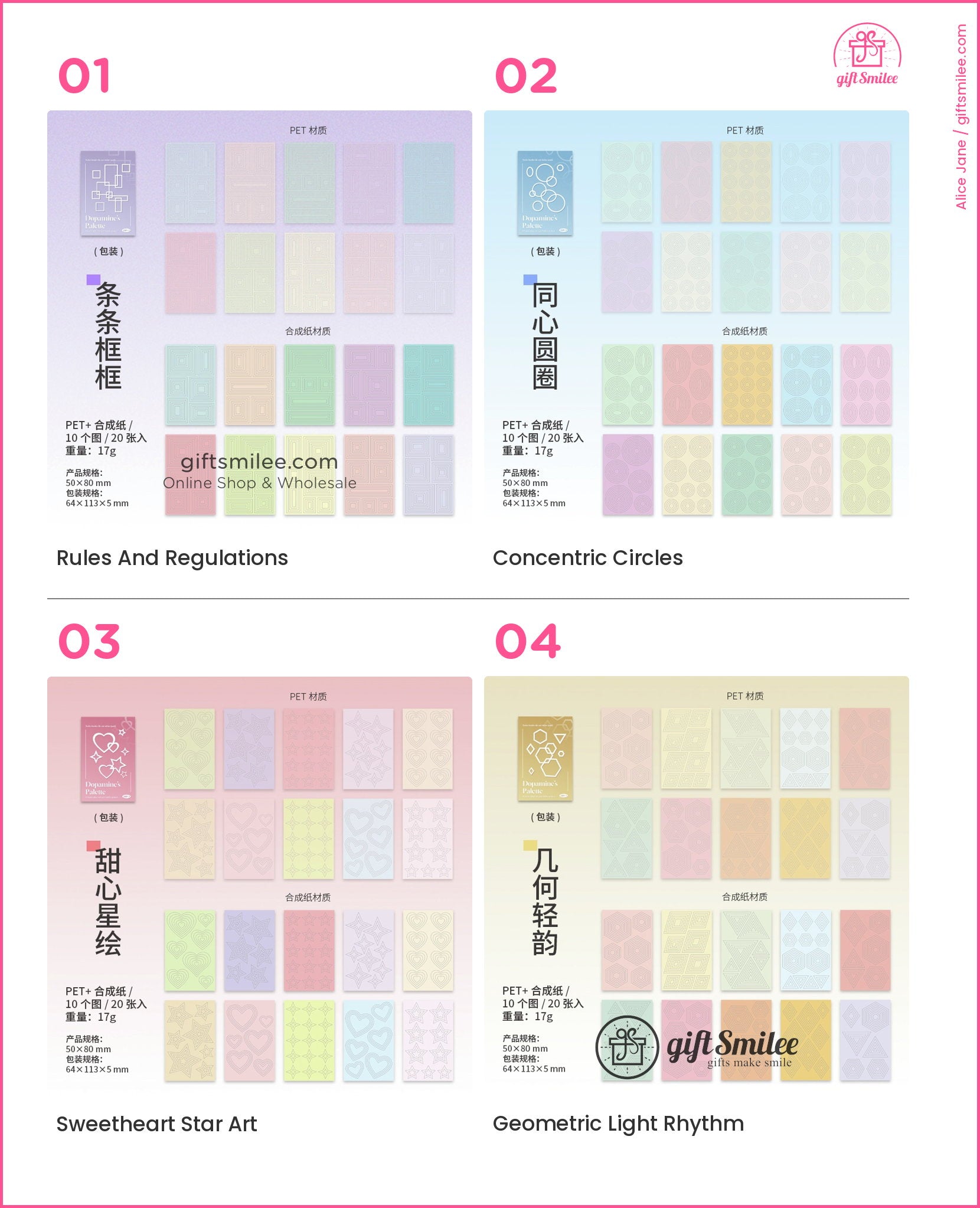 | Styles | 4 styles / 10 designs per style / 20 pieces |