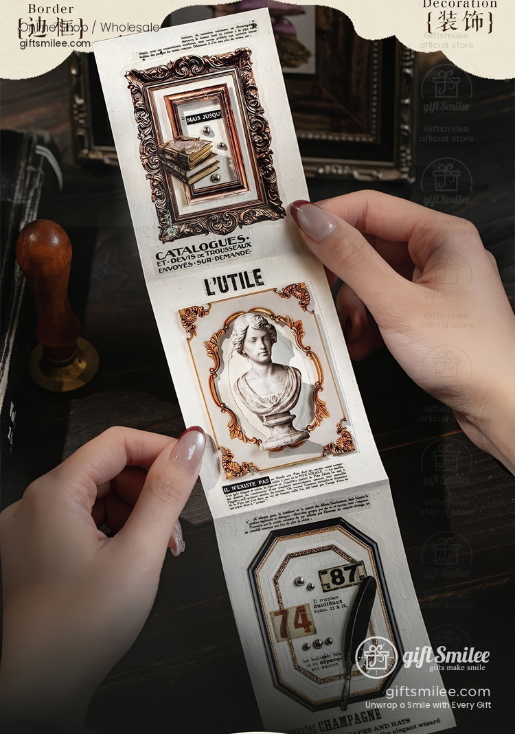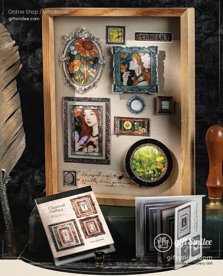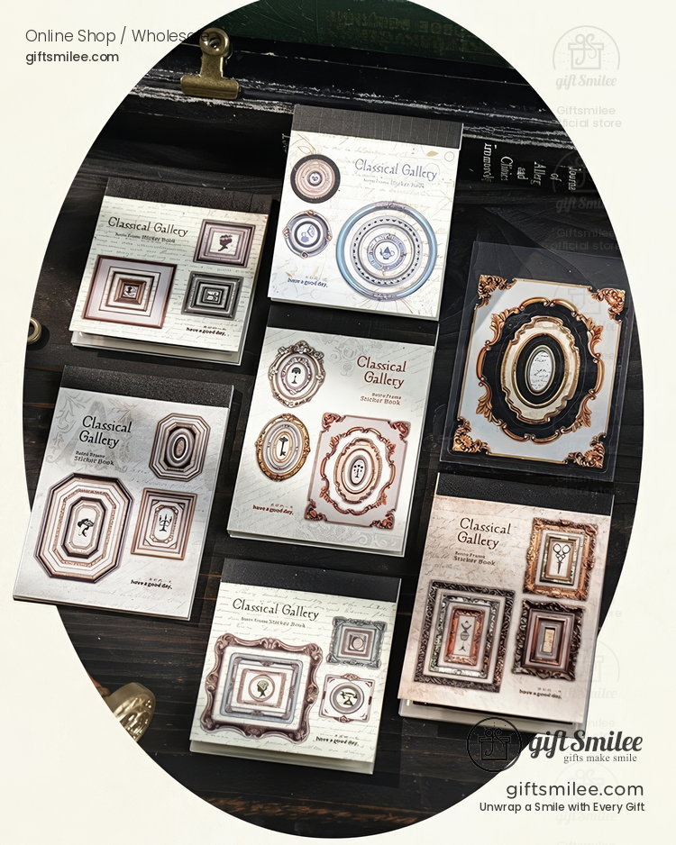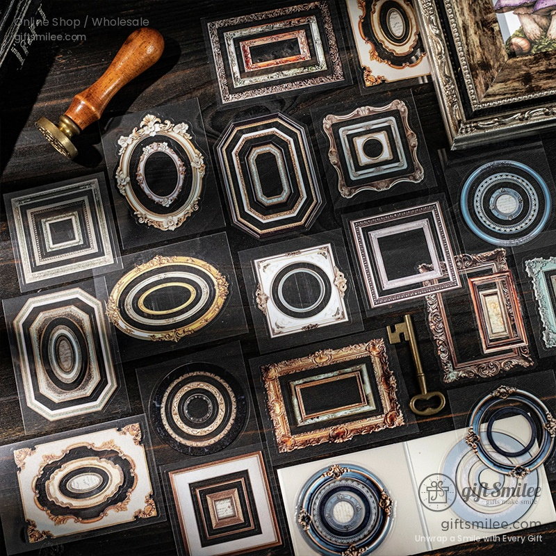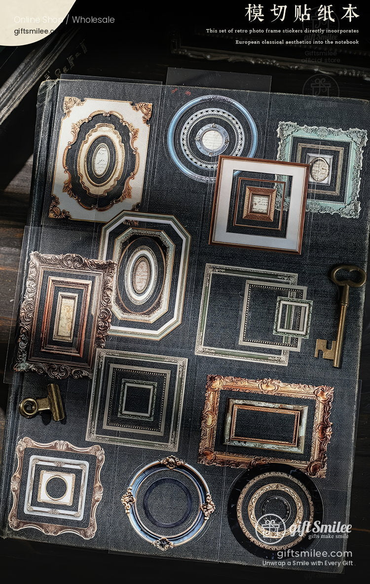 A quiet afternoon, sunlight filtering through heavy curtains, and a desk scattered with fragments of lives that came before. These ornate frames feel like peering into forgotten snapshots of history—each one a tiny museum of texture, color, and elegance. Paired with pages of poetry or pressed flowers, they make every journal spread a time capsule.