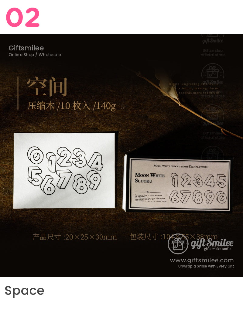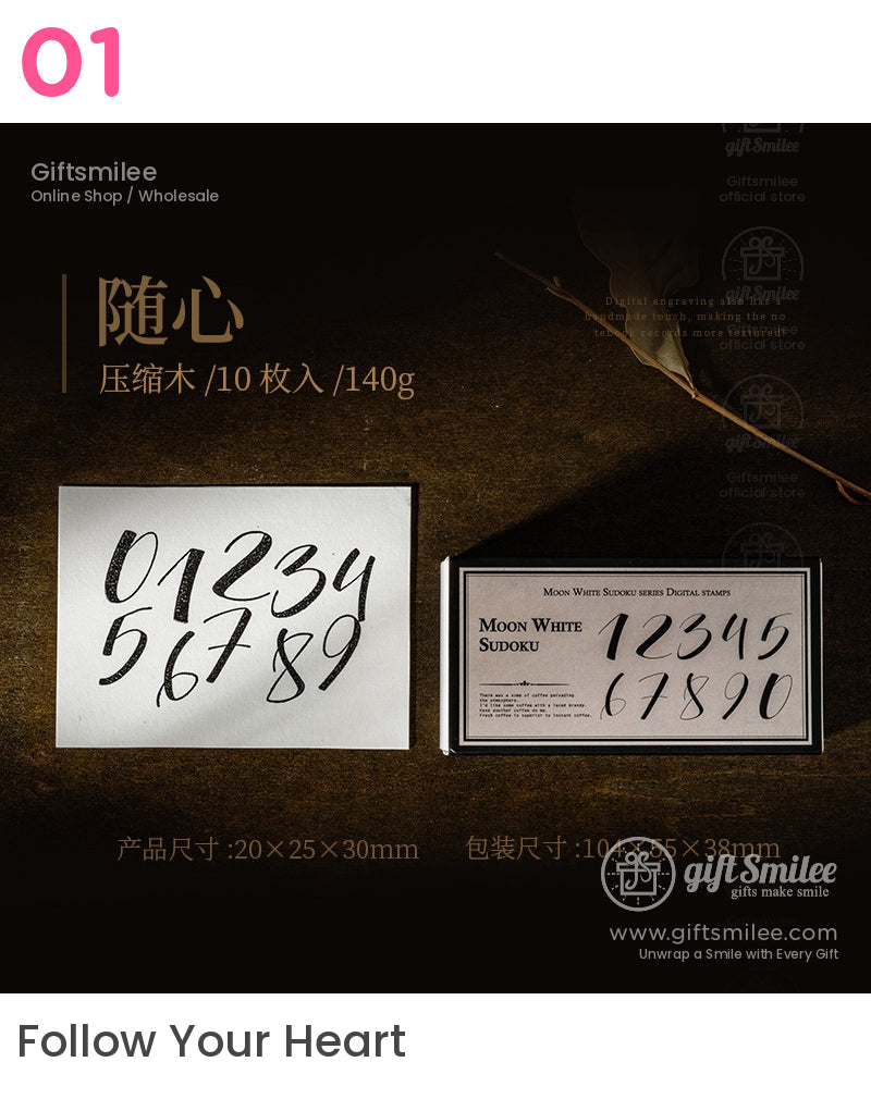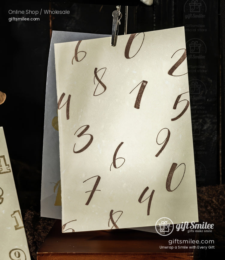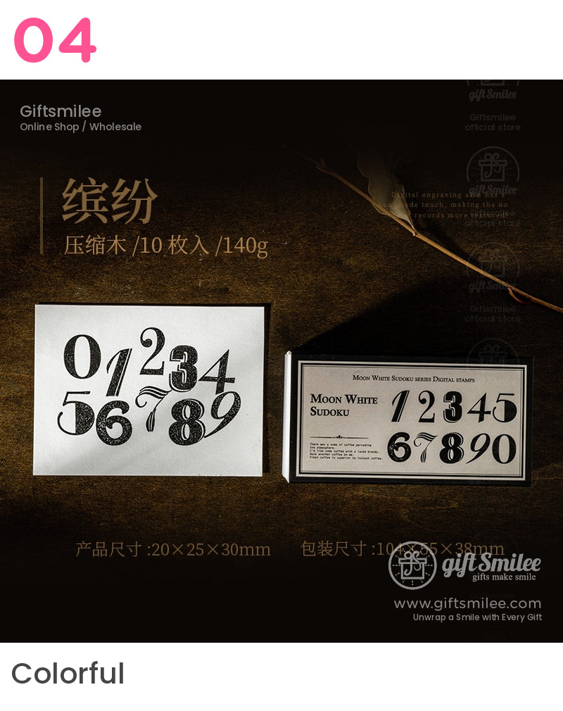 Soft sunlight filters through your workspace, highlighting the textured kraft-paper blocks and their intricate number designs. Each stamp leaves a crisp, timeless impression, a perfect blend of bold strokes and delicate curves on your journal pages. It's like giving life to memories, one number at a time.↵